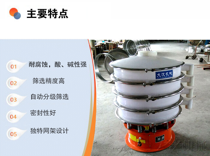 2、篩選精度高,可以篩分500目以內(nèi)的粉狀物料及顆粒;