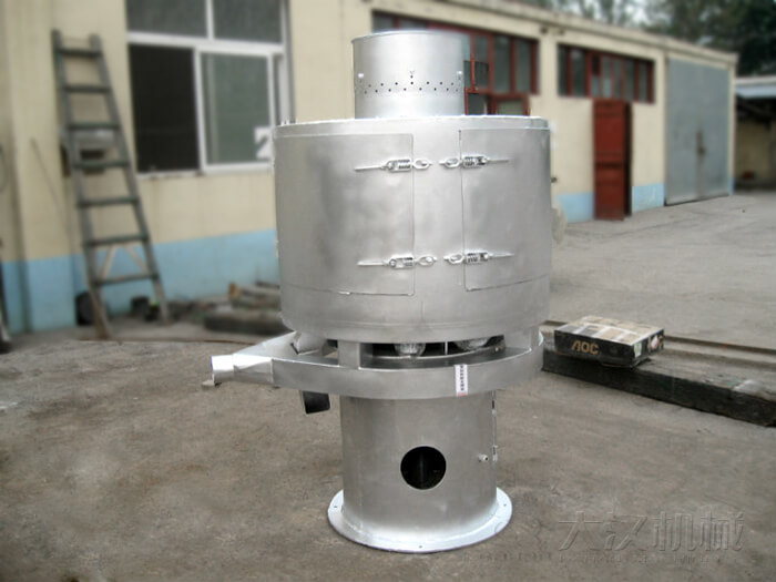 氣流篩分機主要是由電機、機座、篩箱、進出料推進裝置等部分組成的。本設備篩網為圓筒狀,置于機體內,作業時物料不是直接投放到篩體內,而是經由一截螺旋輸送機送入,篩箱內的分流葉片高速連續轉動,將送入的物料吹起沖向圓筒狀的篩網,細料透過篩網進入成品儲料室,粗料從出料口流出。