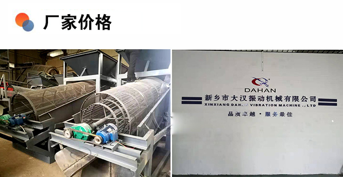 大漢滾筒篩分機精選優(yōu)質(zhì)耐磨材料,設備質(zhì)量好,使用壽命長久,另外,大漢滾筒式篩分機型號全,可以按照用戶要求定制,廠家直銷價格更便宜。