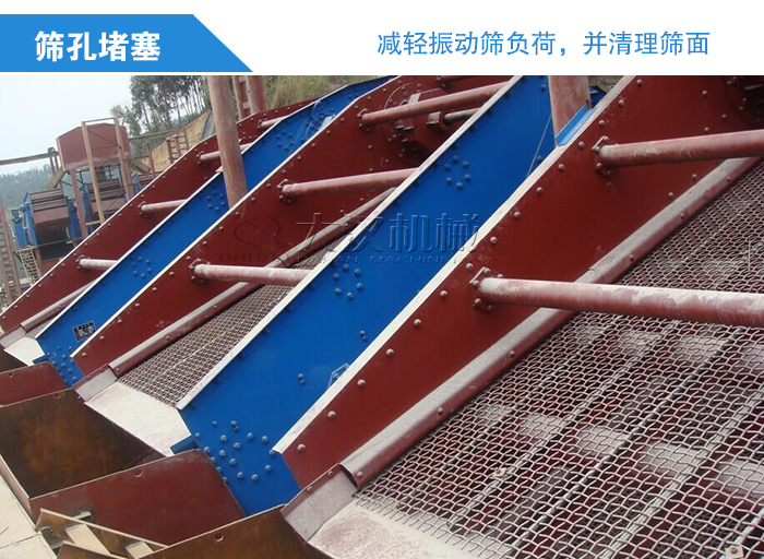 措施:當遇到這種情況一般應減輕振動篩負荷,并清理篩面,及時解決篩孔堵塞問題。