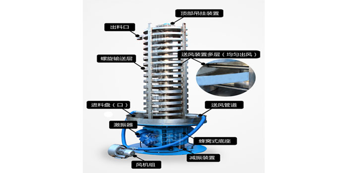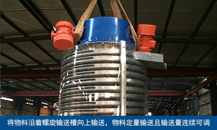 DZC垂直振動提升機是一種新型的提升機械設備。它是將物料沿著螺旋輸送槽向上輸送,物料定量輸送且輸送量連續可調。該系列提升機除具有從下往上輸送物料外,還可以完成對物料的干燥、冷卻作用,DZC型垂直振動提升機分開槽式振動提升機和封閉式振動提升機兩種結構,并可根據不同工藝的要求,設計顆粒物料分級作用的篩選提升機及設計易燃易爆物料的提升機。