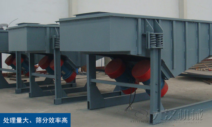 直線振動篩又被稱為直線篩,是一種運動軌跡為直線的新型、振動篩分設備。直線震動篩利用振動電機激振作為振動源,使物料在篩網上被拋起,同時向前作直線運動,物料從給料機均勻地進入篩分機的進料口,通過多層篩網產生數種規格的篩上物、篩下物、分別從各自的出口排出。具有處理量大、篩分效率高、篩網更換方便、安裝及維修簡單等優點。