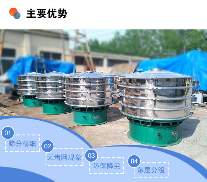 可篩1至5層篩網(wǎng),能同時(shí)進(jìn)行2至6個(gè)等級(jí)的分選或過濾。