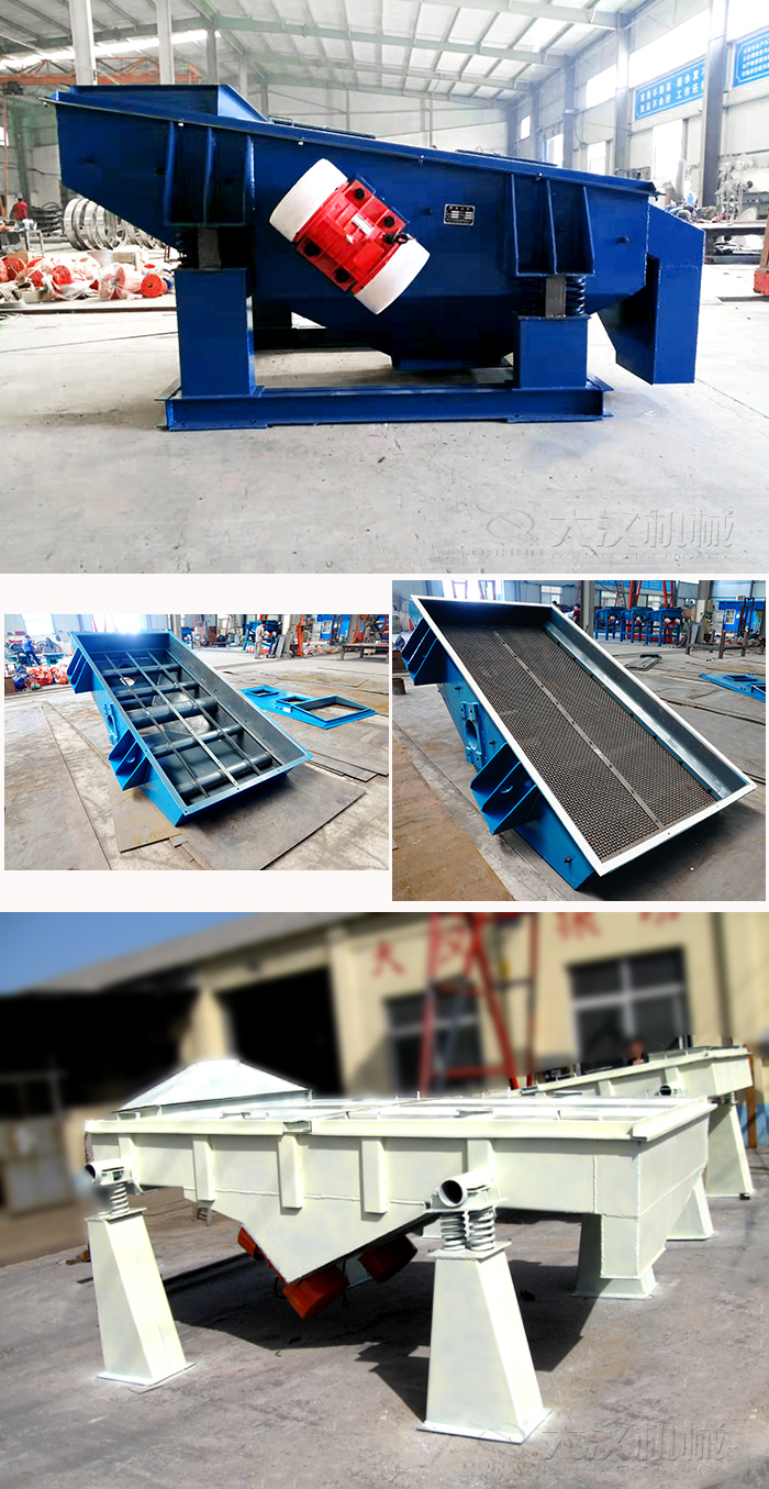 礦用直線振動篩主要由篩箱、激振器、支承系統及振動電機組成。