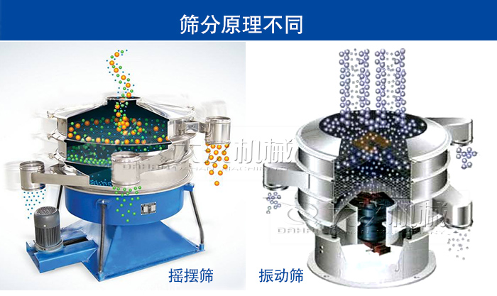搖擺篩是模仿人工篩分的低頻旋振篩,原材料在篩表面做非線性的三維運動,而振動篩是運用不均衡重錘式使電機做平均水平,垂直,傾斜的三次元運動,進而更改原材料的運動大方向。