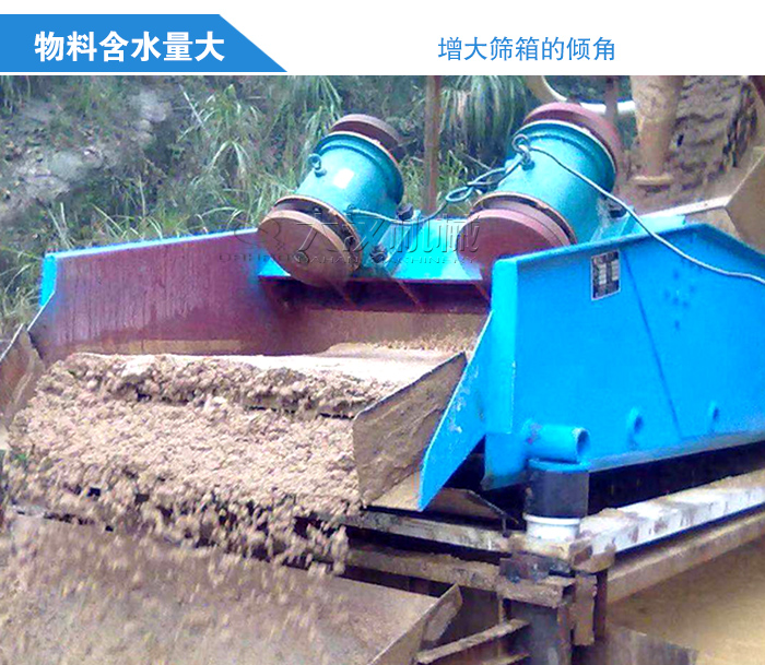 措施:物料水分過大,想達到篩分效果,可以增大篩箱的傾角。
