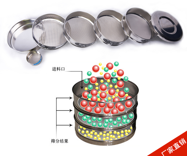 該系列保準試驗篩上部由固定黃銅螺帽、壓板、篩蓋、篩框、中篩框、篩底、等距調節桿等等部件組成,所有部件均是選用優質SUS304不銹鋼精制加工而成。標準實驗篩是以立式振動電機作為整機的振動源,通過振動電機帶動上部振動盤振動,再通過振動盤傳導至安放在振動盤上部的篩框上,然后由需要檢測目數的篩框把小于篩網孔徑的物料顆粒篩分至下層篩框,如此層層篩選,使每層試驗篩內只留相同粒度的物料,達到不同粒度的分離并確定此物料的粒度組成,使篩框中的物料能夠達到非常有效的過濾、分級、篩分的目的。